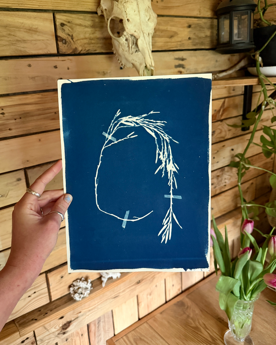 The cyanotype process is a 19th century, iron based, photographic printing method in which negatives are used to expose light onto paper- creating these iconic Prussian blue prints.